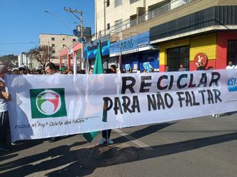 Já a Escola Profª Celuta das Neves apresentou o tema “Reciclar para não faltar”, reverenciando a coleta seletiva em Itaúna, que possui 23 anos de história, referência no modelo de separação do lixo “seco e molhado”. Ao longo do desfile foi representado o ciclo do manejo dos resíduos com a presença, não somente dos alunos e de funcionários do SAAE, mas também das empresas parceiras: Quantum Engenharia com as varredoras e coletores de lixo molhado, a COOPERT com os cooperados do trabalho de reciclagem e a IR Novatec, que faz a destinação final do lixo no aterro sanitário.