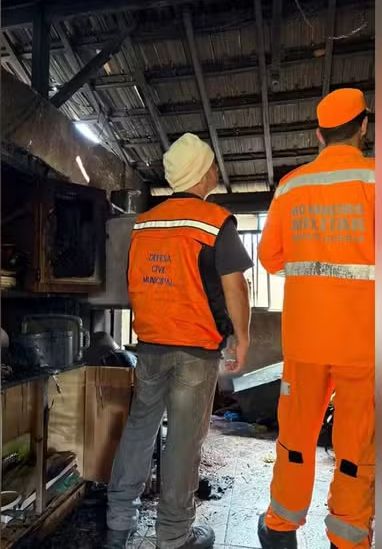Quando os bombeiros chegaram, o fogo já havia sido controlado por militares da Defesa Civil. A residência teve danos estruturais e foi interditada para avaliação técnica.