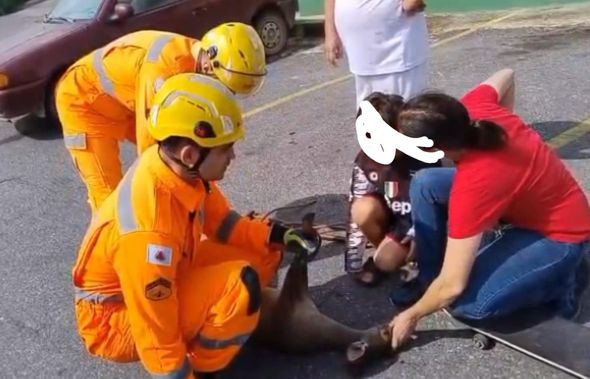 Corpo de Bombeiros resgata cervo no pátio da Cooperativa