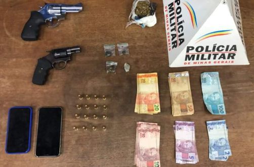 Dois rapazes de 20 e 21 anos foram presos em flagrante por porte ilegal de arma, sendo apreendidos drogas e dinheiro em espécie, durante uma operação em Lopes, na Zona Rural de Itaúna, onde ocorria um baile funk.