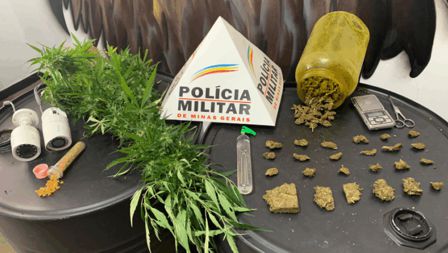 Durante a abordagem, os policiais apreenderam aproximadamente 200 pedras de crack, cinco tabletes de maconha prensada, um pote com mais de 100 buchas da droga, além de um pé de maconha de cerca de 1 metro, uma balança de precisão, tesoura, duas câmeras de segurança e um frasco de lança perfume.