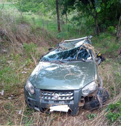 No local, a guarnição confirmou que se tratava de um veículo Fiat Strada, que havia saído da pista e caído em uma ribanceira às margens da rodovia, apresentando danos significativos. As equipes da Polícia Rodoviária Estadual já se encontravam no ponto da ocorrência realizando controle de tráfego e preservação da área.