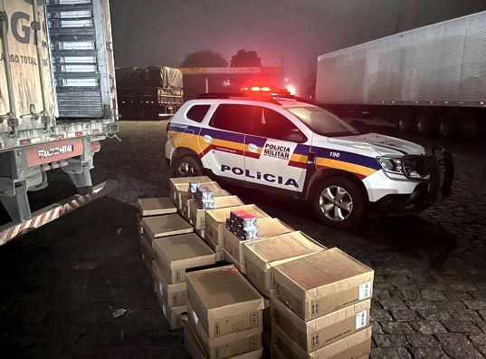Durante patrulhamento preventivo e estratégico realizado pela Polícia Militar na madrugada de sábado para domingo (08/03), no povoado de Pinheiros, em Itatiaiuçu, militares da 9ª Cia PM Ind visualizaram diversas caixas espalhadas próximas a uma carreta estacionada no pátio de um posto de combustíveis.