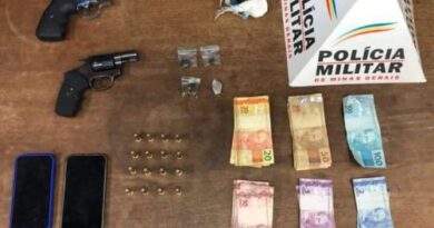 Material apreendido: 01 revólver calibre .32; 04 munições calibre .32.