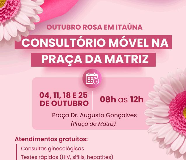 Por isso, convida todas as mulheres a participarem das ações do Outubro Rosa, aproveitando os atendimentos gratuitos e os serviços especializados oferecidos.